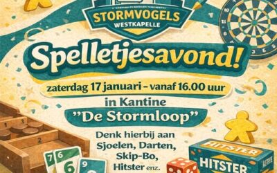 Op zaterdag 17 januari houden we vanaf 16:00 uur een gezellige spelletjesmiddag /-avond in kantine De Stormloop. Leden, niet-leden, jong en oud. Iedereen van harte welkom voor een spelletje, hapje ...