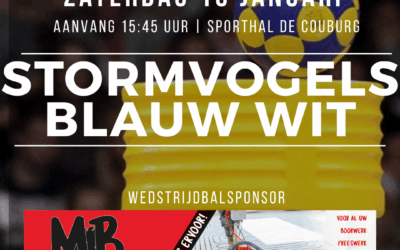 De wedstrijdbal voor de wedstrijd Stormvogels 1 – Blauw Wit 4 wordt geschonken door Minderhoud Betonboringen. ...