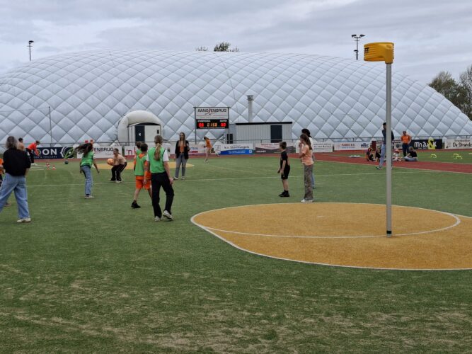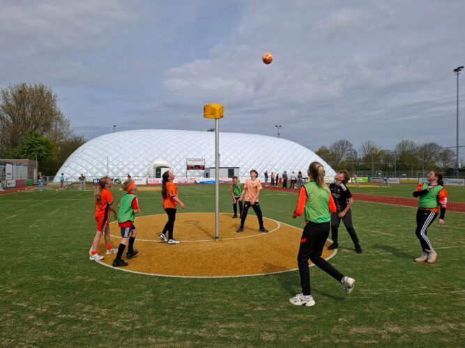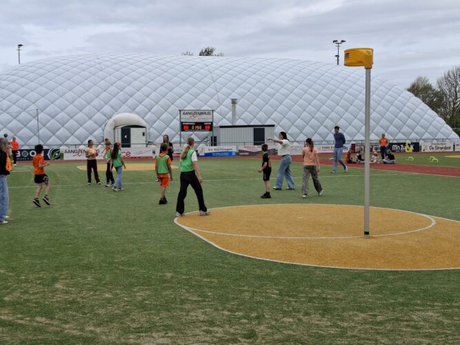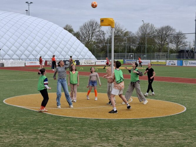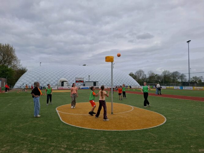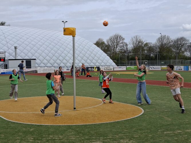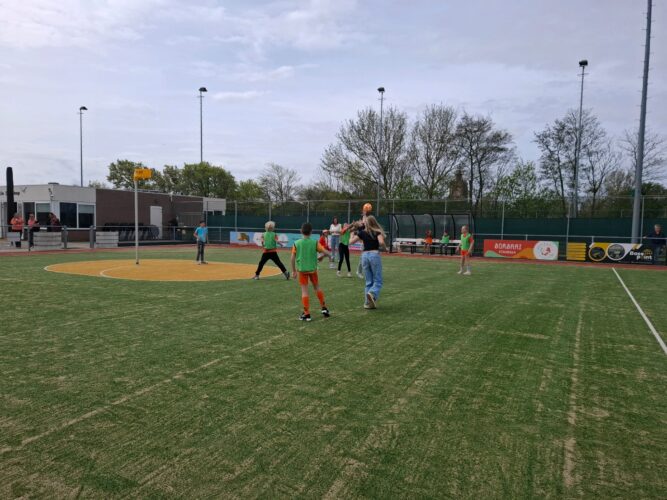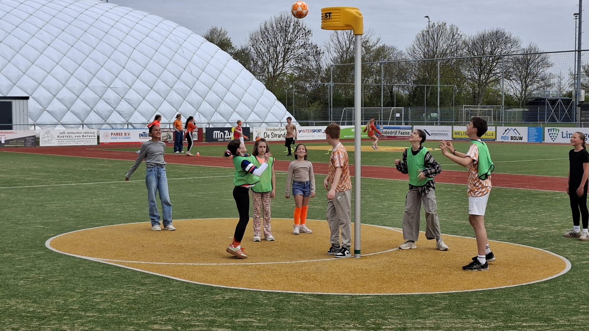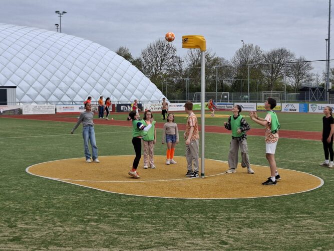 Eén van de onderdelen was uiteraard korfbal, waar fanatiek aan mee werd gedaan.