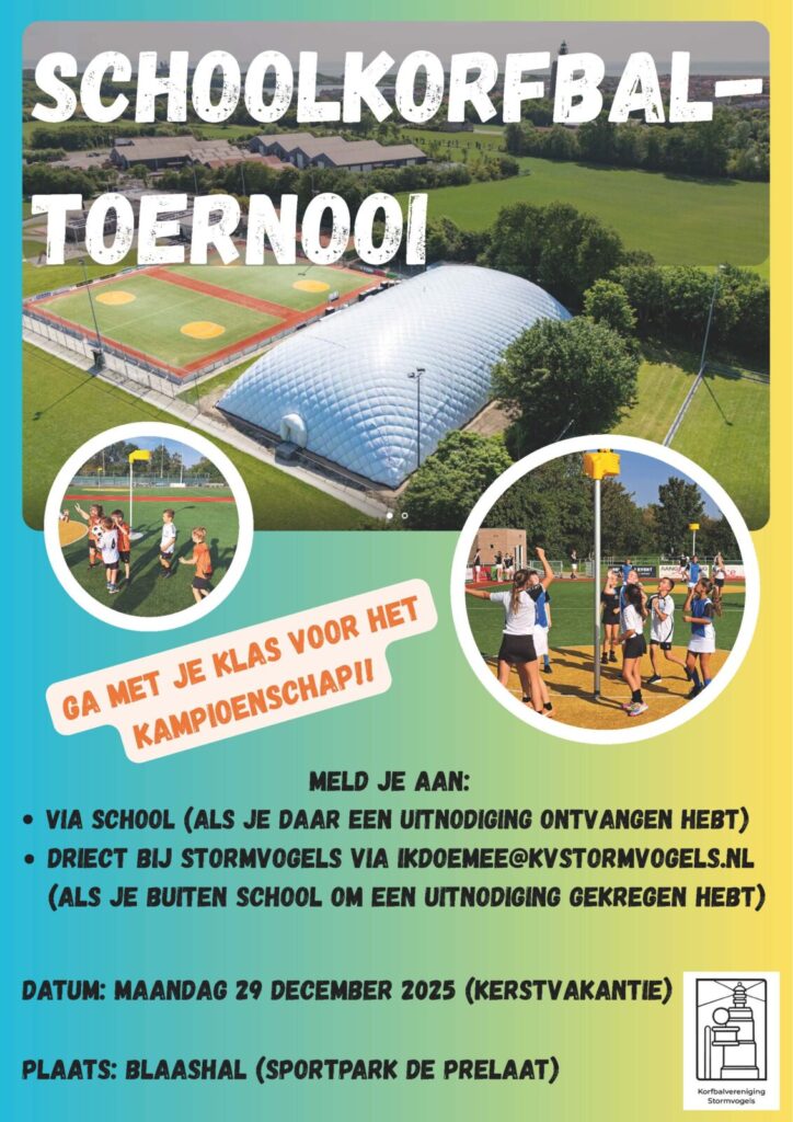Nog niet aangemeld voor het schoolkorfbaltoernooi op 29 december? Meld je dan uiterlijk dit weekend nog aan!