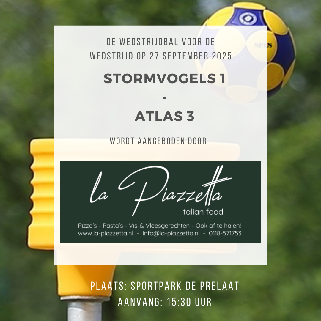 De wedstrijdbal voor de wedstrijd Stormvogels 1 – TOGO 4 wordt geschonken door La Piazzetta.