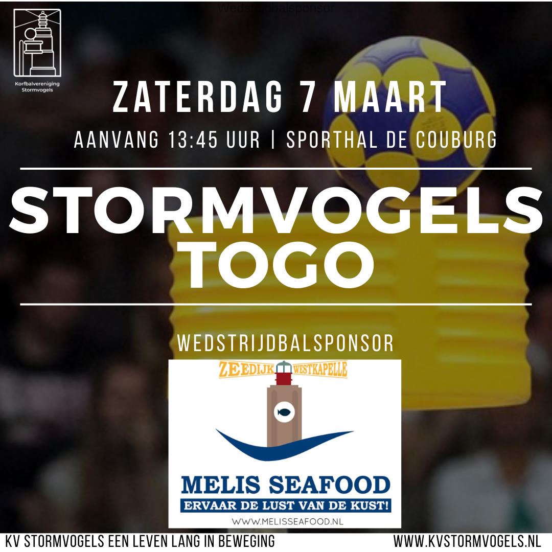 De wedstrijdbal voor de wedstrijd Stormvogels 1 – TOGO 5 wordt geschonken door Melis Seafood.